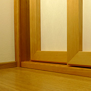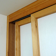 For the Japanese sliding door or sliding wall, the wood of the North American hemlock fir has proven; it has a warm tint and, due to its fine and straight growth, is extremely resilient (particularly important in a high-use built-in wardrobe with sliding doors running in front of each other). We only use carefully hand-selected woods. Being a pure natural product, there might be variations in grain and colour. Lighter and darker areas of the wood will align in time while some small occasional dark inlets make texture very lively.