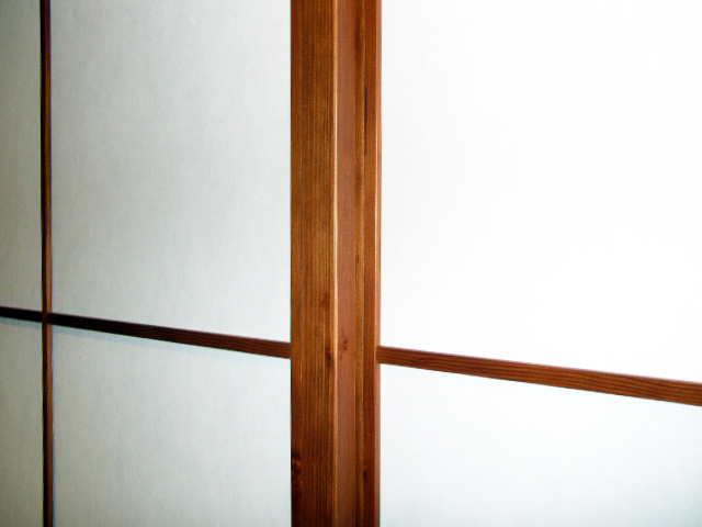 Our original Japanese paper, which we import ourselves, is known for its special resistance to tearing. It is applied taut over the entire area of the lattice frame. You can choose between structured and smooth surface Japanese paper.